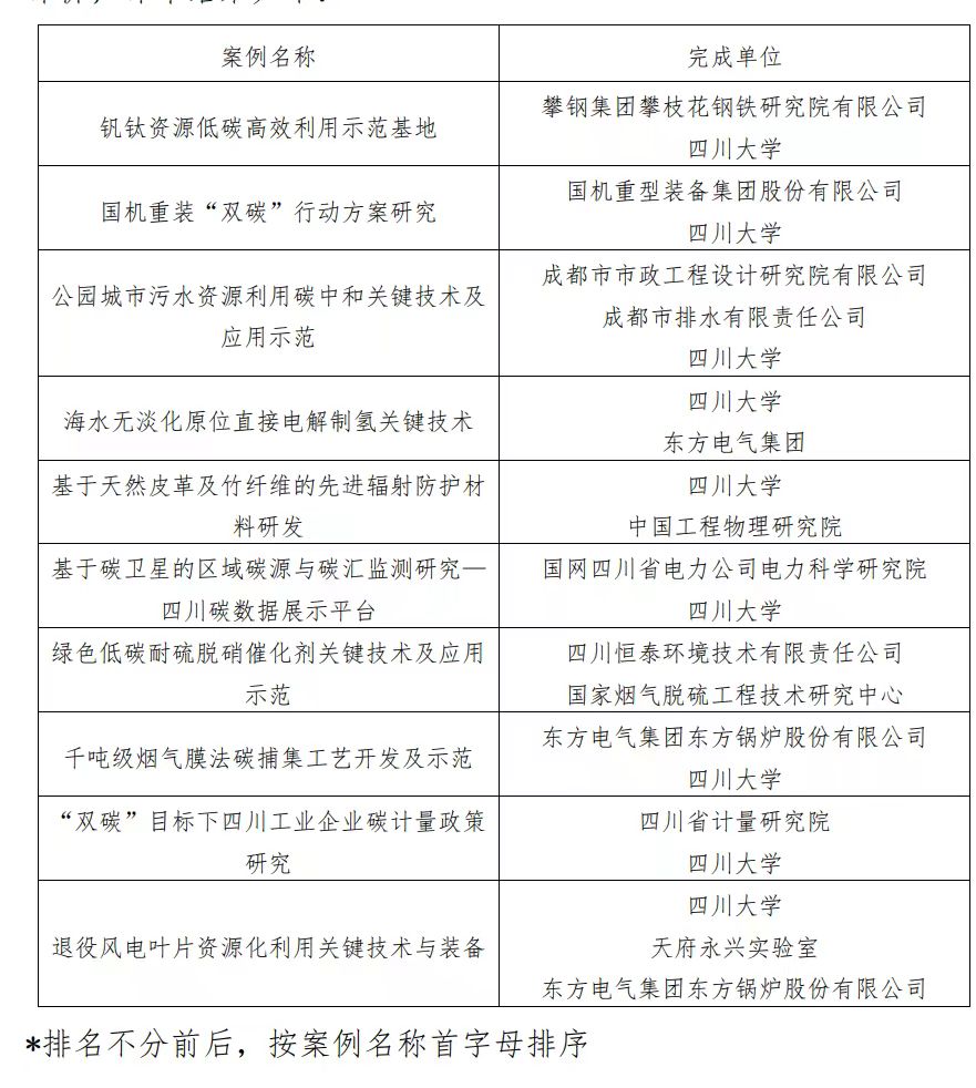 会上发布了2024四川省碳中和产教融合十大典型案例榜单。