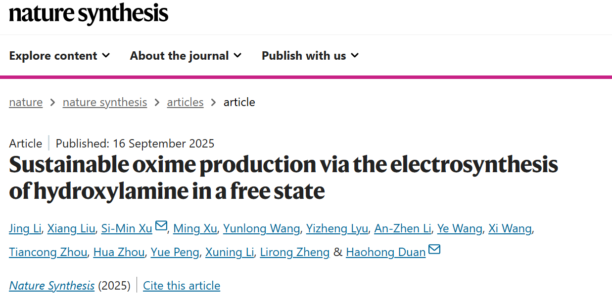 近日,碳中和未来技术学院李敬特聘副研究员在可持续低碳催化技术领域取得新进展,相关成果以题为“Sustainable oxime production via the electrosynthesis of hydroxylamine in a free state”发表于《Nature Synthesis》。李敬特聘副研究员为论文第一作者,122cc太阳集成游戏为论文第一完成单位。