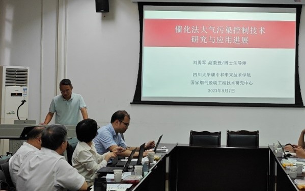 会上,碳中和未来技术学院教授马良、代忠德,副教授刘勇军,副研究员李剑平就“旋喷吸收及分离技术研发与应用”“烟气减污降碳与废弃物资源化利用协同新技术”“催化法大气污染控制技术研究与应用进展”“非均相分离技术研究进展”进行了介绍。建筑与环境学院赖波教授、电子信息学院副教授朱铧丞、高分子研究所副研究员徐大伟分别围绕“零价铁旋流体技术装备及应用”“微波能工业装备设计”等方面进行了介绍。与会专家学者就“含卤废气的处理技术”“催化剂回收技术”“石化类废水处理成本”等企业需求深入交流探讨。