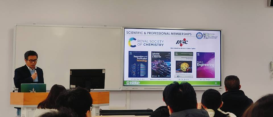 为积极响应碳中和国家重大战略,促进开展碳中和领域科学研究和人才培养,2025年3月7日,“122cc太阳集成游戏碳中和未来技术青年学者论坛”(第四十五期)在122cc太阳集成游戏江安校区综合楼B座604顺利召开。本次论坛邀请了122cc太阳集成游戏海纳特聘教授、国家级海外高层次人才项目入选者、美国匹兹堡大学土木与环境工程系兼职教授伊守亮作报告,报告主要聚焦碳捕集转化及分子选择性分离的新一代膜技术。学校30余位师生参会,本次论坛由学院院长助理代忠德教授主持。